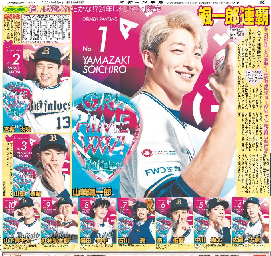 オリ姫デー人気投票結果発表!一位は今年も山崎颯一郎!